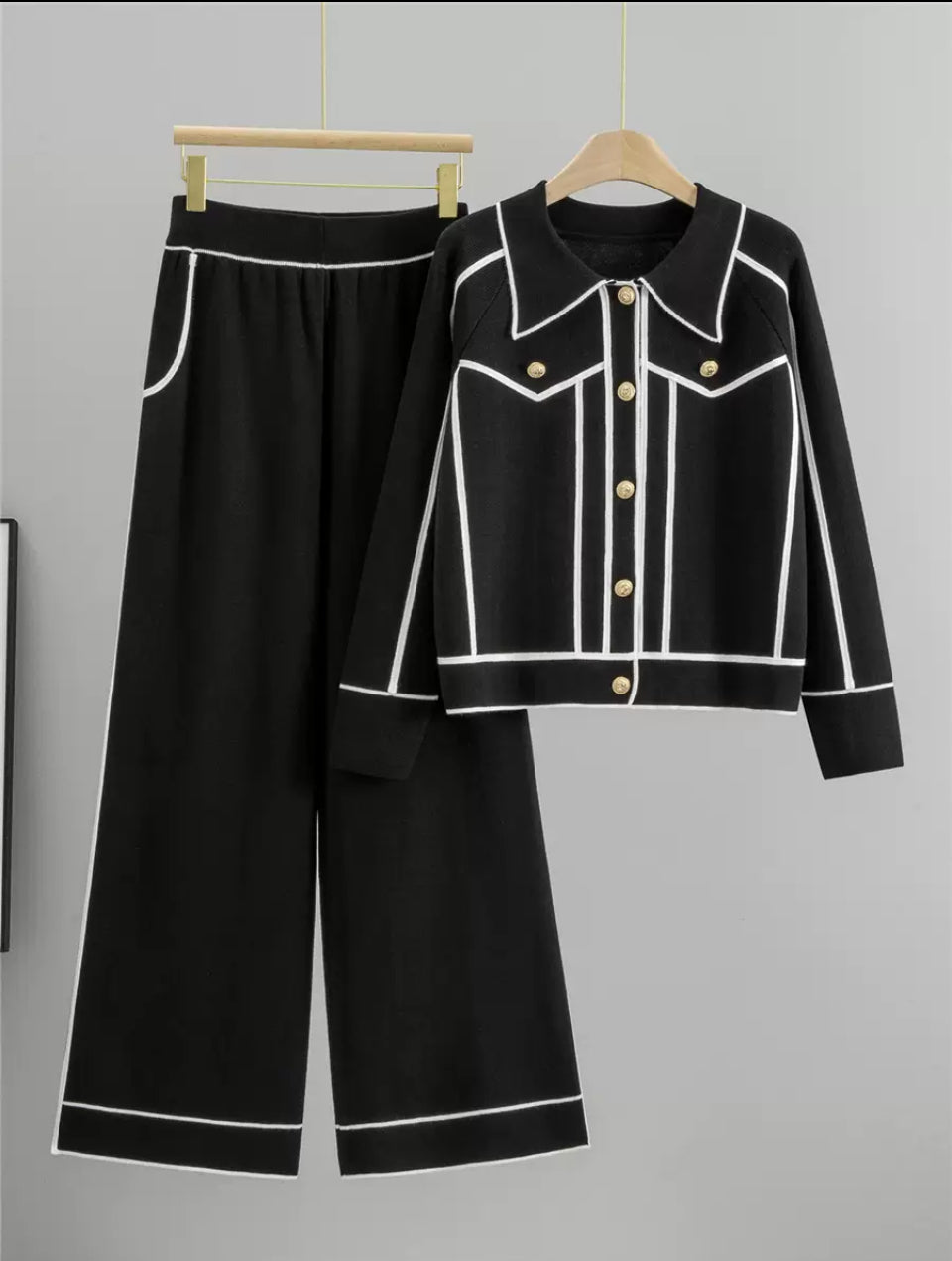 Strip collar detail co-ord set with high waist trousers